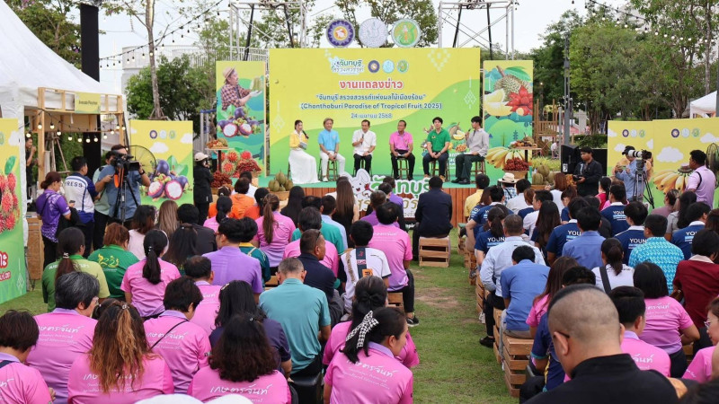 วันพฤหัสบดีที่ 24 เมษายน 2568 เวลา 17.00 น. นายสุภาพ เกิดบุญ สหกรณ์จังหวัดจันทบุรี ร่วมงานแถลงข่าวการจัดงาน “จันทบุรี สรวงสวรรค์แห่งผลไม้เมืองร้อน” (Chanthaburi Paradise of Tropical Fruit 2025) ระหว่างวันที่ 1 - 5 พฤษภาคม 2568 โดยมีวัตถุประสงค์เพื่อเผยแพร่ประชาสัมพันธ์สินค้าเกษตรและอาหาร ตั้งแต่ดันน้ำ กลางน้ำ และปลายน้ำ ที่มีคุณภาพมาตรฐาน สินค้า OTOP สินค้า GI แหล่งท่องเที่ยวเชิงเกษตรที่มีชื่อเสียง และภูมิปัญญาท้องถิ่นของเกษตรกรที่เป็นอัตลักษณ์ของจังหวัดจันทบุรี เผยแพร่องค์ความรู้เทคโนโลยีการเกษตร การแปรรูป และนวัตกรรมการเกษตรสู่เกษตรกรและผู้ประกอบการส่งเสริมช่องทางการตลาดสินค้าเกษตร สมุนไพร และสินค้าเกษตรแปรรูป นวัตกรรมของจังหวัดจันทบุรี และส่งเสริมการท่องเที่ยวเชิงเกษตรในพื้นที่จังหวัดจันทบุรี โดยมีนายวิสุทธิ์ ประกอบความดี รองผู้ว่าราชการจังหวัดจันทบุรี เป็นประธานเปิดงานแถลงข่าว ณ ศูนย์การค้าเซ็นทรัลจันทบุรี