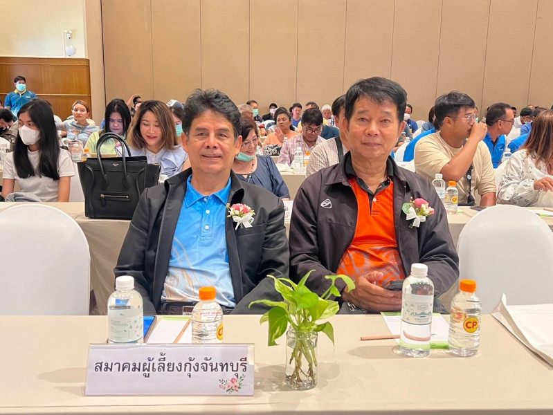 วันพุธที่ 28 พฤษภาคม 2568 เวลา 13.00 น. นางธำรงลักษณ์ นักเสียง ผู้อำนวยการกลุ่มส่งเสริมและพัฒนาธุรกิจสหกรณ์ พร้อมด้วยพนักงานราชการ กลุ่มส่งเสริมและพัฒนาธุรกิจสหกรณ์ สำนักงานสหกรณ์จังหวัดจันทบุรี เข้าร่วมงานสัมมนา “สร้างอนาคตร่วมกัน เพื่อกุ้งไทยได้ไปต่ออย่างมั่นคง’’ เพื่อยกระดับความรู้ และความมั่นใจ ในการเลี้ยงกุ้ง โดยในงานมีการเรียนเชิญวิทยากรรับเชิญจากกรมประมงมาบรรยาย ในหัวข้อ “นโยบายและแนวทางการขับเคลื่อนกับการฟื้นฟูอุตสาหกรรมกุ้งไทยในวาระกุ้งแห่งชาติ” ร่วมกับวิทยากรผู้ทรงคุณวุฒิของบริษัทเจริญโภคภัณฑ์อาหาร จำกัด (มหาชน) โดยมีนายวิโรจน์ ยุทธยงค์ รองผู้อำนวยการใหญ่ธุรกิจสัตว์น้ำครบวงจร เขตประเทศไทย เปิดสัมมนา ณ โรงแรมมณีจันท์รีสอร์ท ตำบลพลับพลา อำเภอเมืองจันทบุรี จังหวัดจันทบุรี