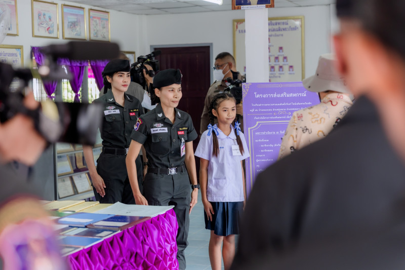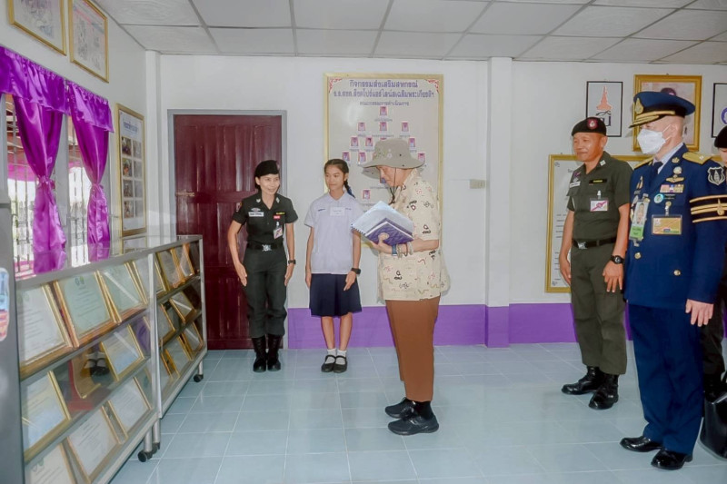 อาคารกิจกรรมสหกรณ์ โดยครูและเด็กนักเรียน กล่าวถวายรายงานผลการดำเนินกิจกรรมสหกรณ์นักเรียน สำหรับปีบัญชีสิ้นสุด 28 กุมภาพันธ์ 2568 มีผลการดำเนินงานมีกำไรสุทธิ 4,803.38 บาท อันเกิดจากการดำเนินกิจกรรมต่างๆ ประกอบด้วย การจัดจำหน่ายผลผลิตทาง การเกษตร อาทิ ผักสวนครัวและไข่ไก่ กิจกรรมสหกรณ์ร้านค้า ซึ่งจัดหาและจำหน่ายสินค้า ได้แก่ อุปกรณ์การศึกษา นม ขนม ไอศกรีม ผลิตภัณฑ์แปรรูป และน้ำยาล้างจาน กิจกรรมการรับฝากออมทรัพย์ กิจกรรมการศึกษาอบรมและการจัดสวัสดิการ ได้เข้าร่วมโครงการทัศนศึกษาดูงานเพื่อเสริมสร้างประสบการณ์ ณ ร้านค้าสวัสดิการสิริพัฒนภัณฑ์ และศูนย์ศึกษาการพัฒนาอ่าวคุ้งกระเบน อันเนื่องมาอากพระราชดําริ จังหวัดจันทบุรี จากนั้นได้ทอดพระเนตรสมุดบันทึกรายงานต่างๆ ซึ่งโรงเรียนได้รับรางวัลชนะเลิศการประกวด “การบันทึกรายงานการประชุมกิจกรรมสหกรณ์” ประจำปี 2567