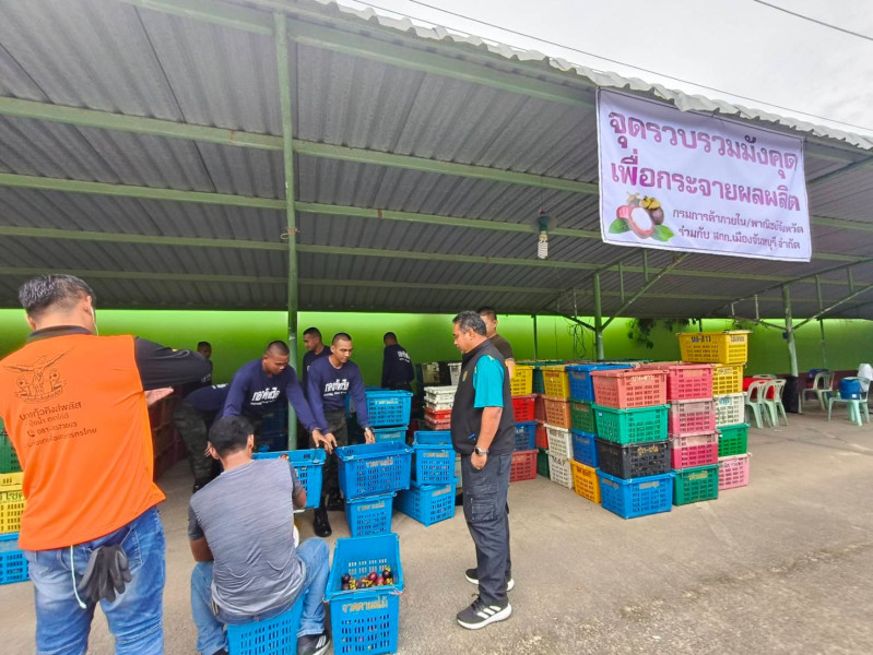 จุดรวบรวมมังคุดเพื่อกระจายผลผลิตมังคุดออกนอกแหล่งผลิตจังหวัดจันทบุรี โดยรับซื้อมังคุดดำ คุณภาพดี ราคากิโลกรัมละ 10 บาท ตั้งแต่วันที่ 17 มิถุนายน 2568 เป็นต้นไป ณ สหกรณ์การเกษตรเมืองจันทบุรี จํากัด ตำบลพลับพลา อำเภอเมืองจันทบุรี จังหวัดจันทบุรี ยอดรวบรวมมังคุด ตั้งแต่วันที่ 17 - 18 มิถุนายน 2568 จำนวน 132 ตัน