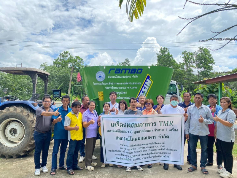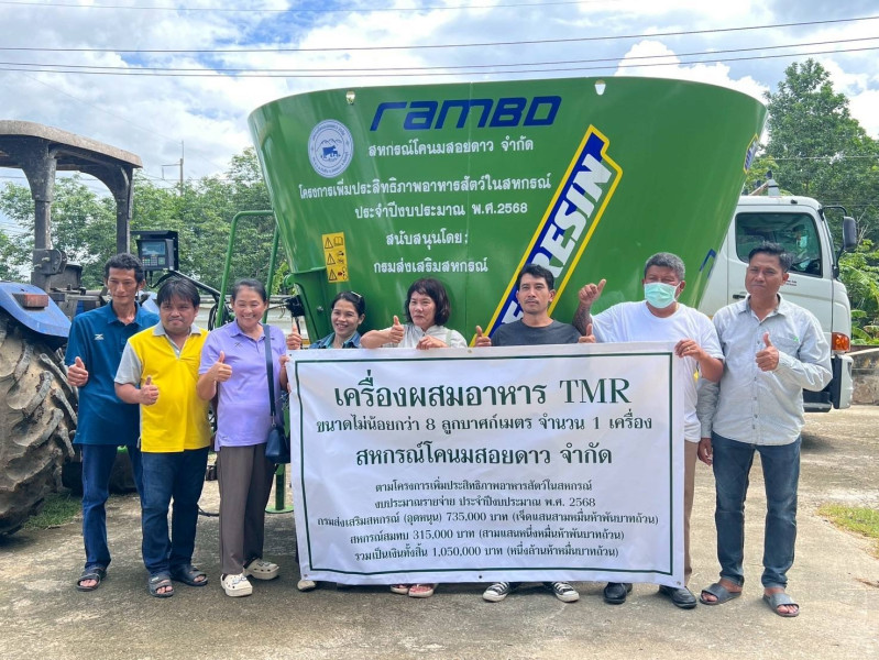 วันที่ 26 มิถุนายน 2568 นายประสาน พะนอจันทร์ ผู้อำนวยการนิคมสหกรณ์โป่งน้ำร้อน พร้อมด้วยข้าราชการและพนักงานราชการ สำนักงานสหกรณ์จังหวัดจันทบุรี คณะกรรมการดำเนินการและเจ้าหน้าที่ ของสหกรณ์โคนมสอยดาว จำกัด ร่วมรับมอบเครื่องผสมอาหาร TMR ซึ่งได้รับจัดสรรงบประมาณรายจ่ายประจำปีงบประมาณ พ.ศ.2568 ของกรมส่งเสริมสหกรณ์ ตามโครงการเพิ่มประสิทธิภาพอาหารสัตว์ในสหกรณ์ ณ สหกรณ์โคนมสอยดาว จำกัด ตำบลทับช้าง อำเภอสอยดาว จังหวัดจันทบุรี
