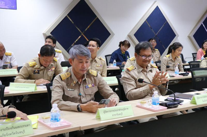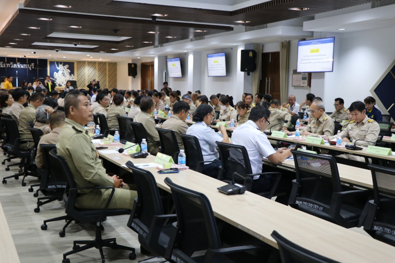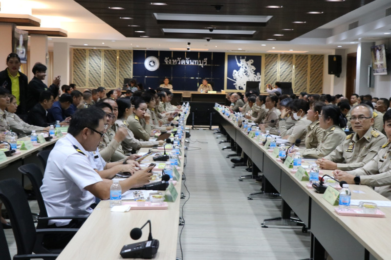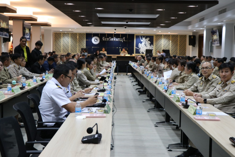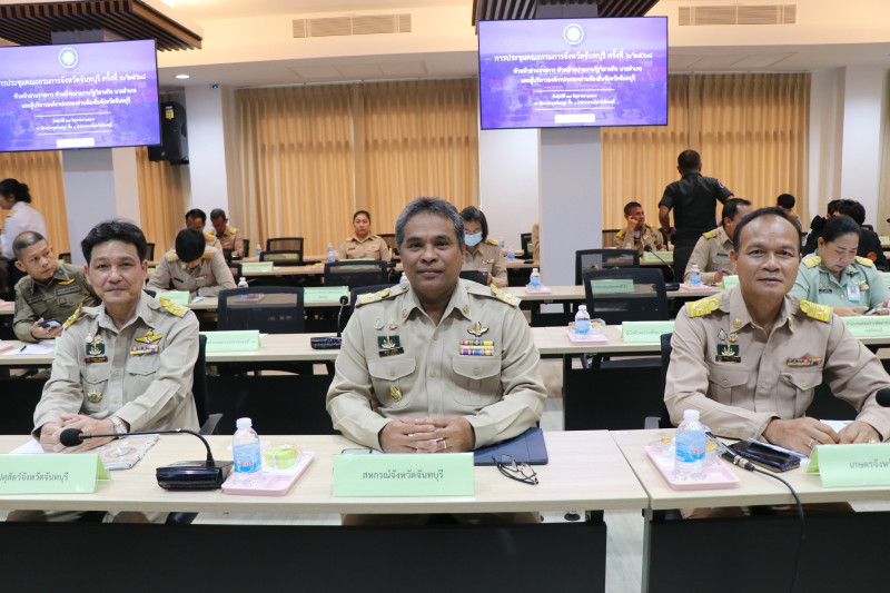จังหวัดจันทบุรี วาระก่อนประชุม มอบเกียรติบัตรให้กับนักเรียนที่ได้รับรางวัลในการประกวดบรรยายธรรม ระดับภาค ประจำปี พ.ศ.2568 จำนวน 8 ราย / มอบเกียรติบัตรเพื่อมอบให้แก่กลุ่มเป้าหมายที่เข้ารับการคัดสรรกิจกรรมพัฒนาชุมชนดีเด่น ประจำปี 2568 จำนวน 5 ราย และแนะนำหัวหน้าส่วนราชการที่ย้ายไปดำรงตำแหน่งที่อื่น วาระการประชุม สถานการณ์การผลิตไม้ผลฯ ประจำเดือนมิถุนายน 2568 /สถานการณ์น้ำจังหวัดจันทบุรี /การคาดหมายลักษณะอากาศของจังหวัดจันทบุรี เดือนกรกฎาคม 2568 / “สุขภาพดี วิถีจันท์” /การส่งเสริมการท่องเที่ยวจันทบุรีตลาดในประเทศและต่างประเทศ /การป้องกันและแก้ไขอุบัติเหตุทางถนน ประจำเดือนมิถุนายน 2568 /รายงานผลการใช้จ่ายและเบิกจ่ายงบประมาณรายจ่าย เดือนมิถุนายน 2568 /โครงการ “อวดเมือง” /ประชาสัมพันธ์และขอความร่วมมือสนับสนุนข้อมูลเพื่อใช้ในการขับเคลื่อนบัญชีข้อมูลภาครัฐฯ /กิจกรรมขยายผลภูมิปัญญาศิลปินสู่การพัฒนาอาชีพ ระดับภูมิภาคฯ /การจัดงานพิธี/รัฐพิธี วันที่ 28 กรกฎาคม 2568 วันเฉลิมพระชนมพรรษาพระบาทสมเด็จพระเจ้าอยู่หัว เป็นต้น