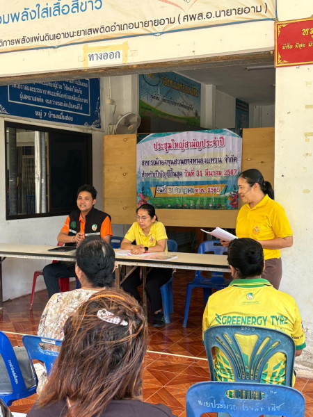วันพฤหัสบดีที่ 31 กรกฎาคม 2568 เวลา 13.00 น. นางนิตยา ต้นสมบัติ เจ้าพนักงานส่งเสริมสหกรณ์อาวุโส เข้าร่วมประชุมใหญ่สามัญประจำปี สิ้นสุดวันที่ 31 มีนาคม 2568 ของสหกรณ์กองทุนสวนยางหนองแหวน จำกัด เพื่อรับทราบผลการดำเนินงาน พิจารณางบฐานะการเงิน งบกำไรขาดทุน และพิจารณาแผนการดำเนินงานและงบประมาณประจำปี 2569 ทั้งนี้ มีผู้อำนวยการการยางแห่งประเทศไทย จังหวัดจันทบุรี และผู้แทน ผู้อำนวยการสำนักงานตรวจบัญชีสหกรณ์จันทบุรี เข้าร่วมประชุมในครั้งนี้ด้วย ณ ศาลาเอนกประสงค์บ้านหมื่นซ่อง ตำบลกระแจะ อำเภอนายายอาม จังหวัดจันทบุรี