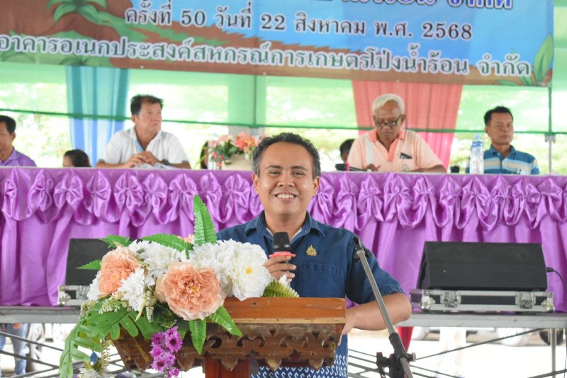 วันที่ 22 สิงหาคม 2568 เวลา 09.30 น. สำนักงานสหกรณ์จังหวัดจันทบุรี โดยนายสรวิศิษฎ์ สุวรรณจักร์ ผู้อำนวยการกลุ่มส่งเสริมสหกรณ์ 3 พร้อมด้วยข้าราชการกลุ่มส่งเสริมสหกรณ์ 3 เข้าร่วมประชุมใหญ่สามัญประจำปี 2567 ของสหกรณ์การเกษตรโป่งน้ำร้อนจำกัด ณ อาคารอเนกประสงค์สหกรณ์การเกษตรโป่งน้ำร้อน จำกัด ตำบลทับไทร อำเภอโป่งน้ำร้อน จังหวัดจันทบุรี