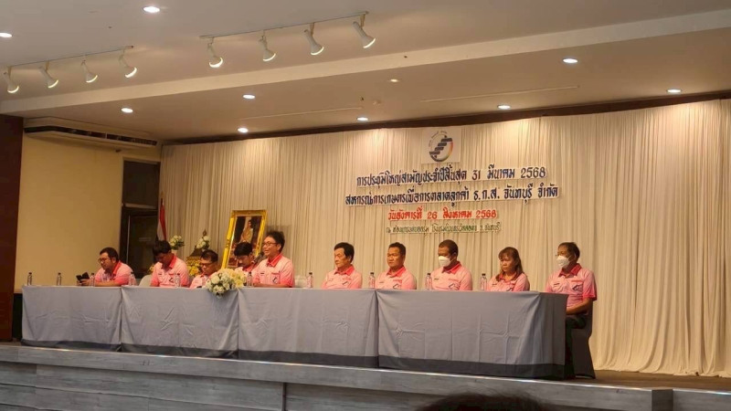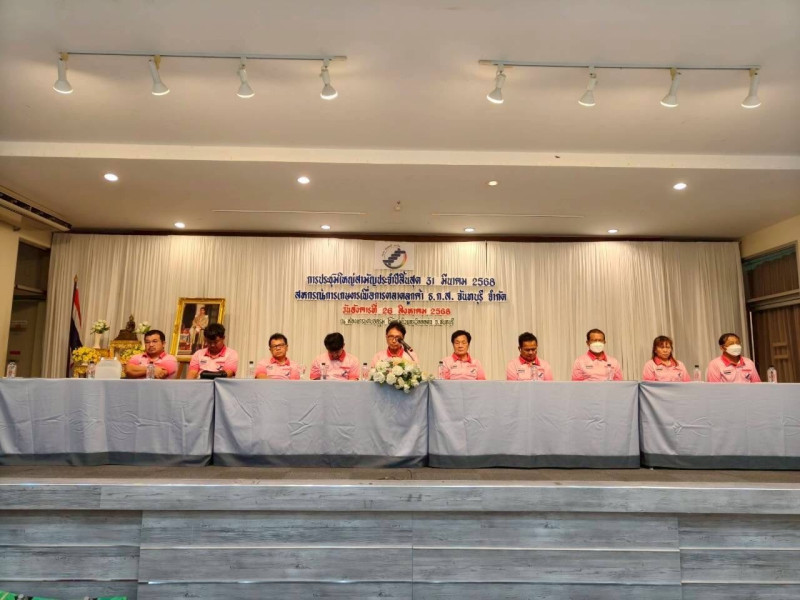 วันอังคารที่ 26 สิงหาคม 2568 เวลา 09:30 น. นางสาวหทัยชนก พุทธาโร ผู้อำนวยการกลุ่มส่งเสริมสหกรณ์ 1 พร้อมด้วยเจ้าหน้าที่ส่งเสริมสหกรณ์ สำนักงานสหกรณ์จังหวัดจันทบุรี เข้าร่วมประชุมใหญ่สามัญประจำปี 2568 สหกรณ์การเกษตรเพื่อการตลาดลูกค้า ธ.ก.ส. จันทบุรี จำกัด ณ ห้องประชุมแกรนด์บอลรูม โรงแรม นิว แทรเวิล ลอด์จ ถนนรักศักดิ์ชมูล ตำบลท่าช้าง อำเภอเมือง จังหวัดจันทบุรี