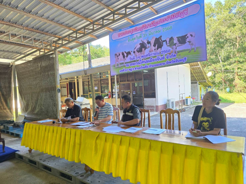 วันศุกร์ที่ 14 พฤศจิกายน 2568 สำนักงานสหกรณ์จังหวัดจันทบุรี โดยนายสรวิศิษฏ์ สุวรรณจักร์ ผู้อำนวยการกลุ่มส่งเสริมสหกรณ์ 3 พร้อมด้วยข้าราชการและพนักงานราชการกลุ่มส่งเสริมสหกรณ์ 3 เข้าร่วมประชุมใหญ่วิสามัญ ครั้งที่ 1/2568 ของสหกรณ์โคนมเมืองจันท์ จำกัด ณ บริเวณพื้นที่ทำการสหกรณ์โคนมเมืองจันท์ จำกัด ตำบลวังแซ้ม อำเภอมะขาม จังหวัดจันทบุรี เพื่อร่วมกันรับทราบผลการดำเนินงานประจำปี 2567 พร้อมทั้งพิจารณาเรื่องสำคัญตามข้อบังคับของสหกรณ์