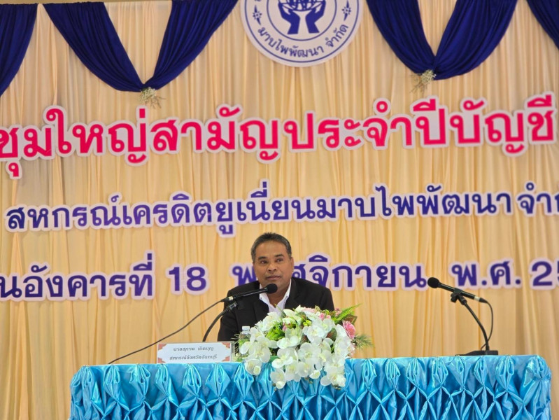 ทั้งนี้ สำหรับปีบัญชีสิ้นสุด 30 กันยายน 2568 สหกรณ์เครดิตยูเนี่ยนมาบไพพัฒนา จำกัด มีสมาชิกทั้งสิ้น 2,398 คน ทุนการดำเนินงานทั้งสิ้น 754.429 ล้านบาท ผลการดำเนินงานมีกำไรสุทธิ 20.619 ล้านบาท เกิดจากสมาชิกมีส่วนร่วมในบทบาทหน้าที่ได้เป็นอย่างดี สมาชิกได้ร่วมกันพิจารณางบการเงินประจำปี เลือกตั้งคณะกรรมการดำเนินการแผนการดำเนินงานประจำปี 2569 รวมทั้งสหกรณ์จังหวัดได้กล่าวแสดงความชื่นชมกับสมาชิกที่ให้ความร่วมมือในการเข้าร่วมประชุมใหญ่ และได้แนะนำเกี่ยวกับการบริหารเงินทุนซึ่งเป็นทุนภายในกว่าร้อยละ 90 และให้สหกรณ์ได้ดำเนินการให้เป็นไปตามเป้าหมายของแผนกลยุทธ์ โดยการนำเทคโนโลยีและนวัตกรรมเข้ามาร่วมในการดำเนินงานของสหกรณ์ นอกจากนี้ยังขอให้สมาชิกร่วมกันทำธุรกิจร่วมกับสหกรณ์ให้มากขึ้น เพื่อทำให้สหกรณ์มีผลการดำเนินงานที่ดีขึ้น ต่อไป