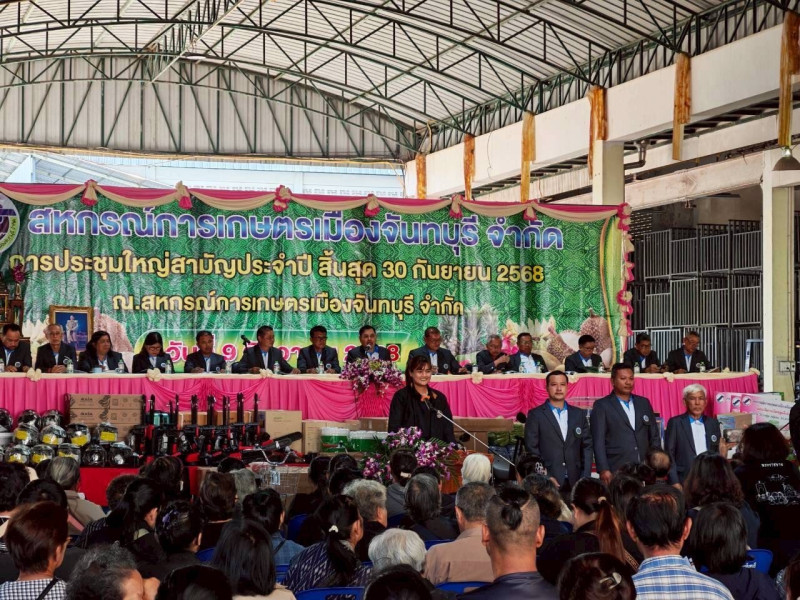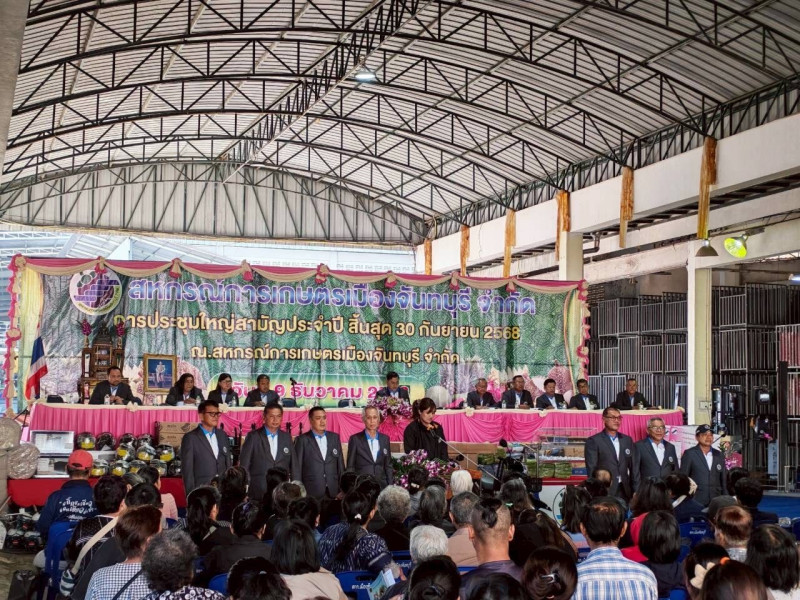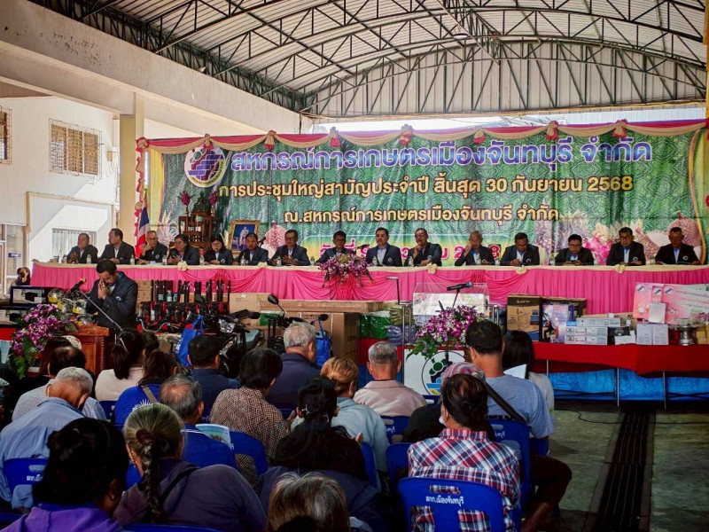 วันอังคาร ที่ 9 ธันวาคม 2568 เวลา 08:30 น. นายสุภาพ เกิดบุญ สหกรณ์จังหวัดจันทบุรี พร้อมด้วยข้าราชการ และพนักงานราชการ สำนักงานสหกรณ์จังหวัดจันทบุรี เข้าร่วมประชุมใหญ่สามัญประจำปี 2568 สหกรณ์การเกษตรเมืองจันทบุรี จำกัด