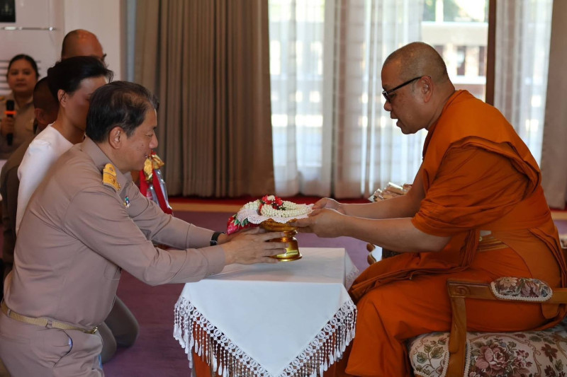 เป็นประธานพิธีกราบถวายมุทิตาสักการะและขอพรจากพระราชธรรมเมธี เจ้าคณะจังหวัดจันทบุรี (มหานิกาย) โดยในโอกาสนี้ พระราชธรรมเมธี ได้เมตตากล่าวสัมโมทนียกถาให้ข้อคิดคติธรรมแก่คณะผู้เข้ากราบขอพรเพื่อเป็นแนวทางในการดำเนินชีวิตและการปฏิบัติราชการ ณ วัดโค้งสนามเป้า ตำบลท่าช้าง อำเภอเมืองจันทบุรี จังหวัดจันทบุรี จากนั้นได้เข้ากราบไหว้ ขอพรจากพระวิบูลวชิรธรรม เจ้าคณะจังหวัดจันทบุรี (ธรรมยุติกนิกาย) ณ อุโบสถ วัดวิเวการาม อ.เมืองจันทบุรี เช่นเดียวกัน เพื่อสืบสานประเพณีอันดีงามและเสริมความเป็นสิริมงคลให้แก่ชีวิตต่อไป