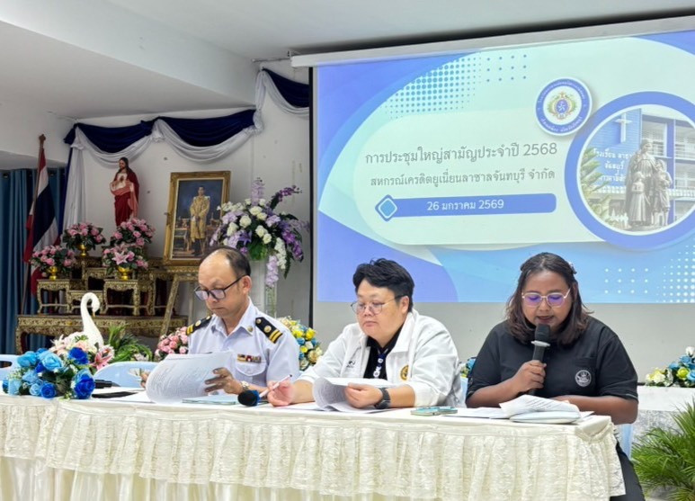 วันจันทร์ ที่ 26 มกราคม 2569 เวลา 16.30 น. นางสาวโยธกา ไชยเพชร นักวิชาการสหกรณ์ปฏิบัติการ พร้อมด้วยบุคลากรกลุ่มส่งเสริมสหกรณ์ 1 สำนักงานสหกรณ์จังหวัดจันทบุรี เข้าร่วมประชุมใหญ่สามัญประจำปี 2568 สหกรณ์เครดิตยูเนี่ยนลาซาลจันทบุรี จำกัด ณ อาคารมารดาพิทักษ์ โรงเรียนลาซาลจันทบุรี (มารดาพิทักษ์) จังหวัดจันทบุรี