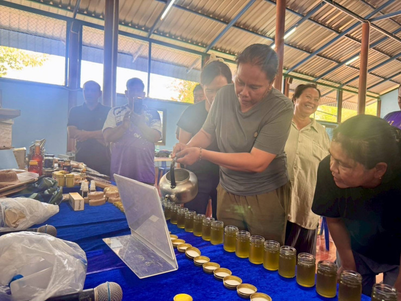 วันพุธที่ 4 มีนาคม 2569 สำนักงานสหกรณ์จังหวัดจันทบุรี โดยกลุ่มจัดตั้งและส่งเสริมสหกรณ์ ได้เข้าติดตาม และแนะนำส่งเสริมกลุ่มชาวบ้านในพื้นที่โครงการพัชรสุธาคชานุรักษ์ เพื่อช่วยเหลือและพัฒนาการประกอบอาชีพหลัก/อาชีพเสริม/สินค้าพื้นถิ่น โดยนำรูปแบบการบริหารจัดการสหกรณ์ไปประยุกต์ใช้ในการบริหารจัดการกลุ่ม พร้อมทั้งจัดกิจกรรมร่วมกับศูนย์ส่งเสริมและพัฒนาอาชีพการเกษตรจังหวัดจันทบุรี สาธิตการทำยาหม่องผลิตภัณฑ์แปรรูปจากผึ้ง เพื่อใช้ในครัวเรือน ซึ่งช่วยลดค่าใช้จ่ายในการดำรงชีพ และสามารถต่อยอดเป็นรายได้เสริมได้ ณ ศาลาเอนกประสงค์ หมู่ที่ 3 ตำบลพวา อำเภอแก่งหางแมว จังหวัดจันทบุรี