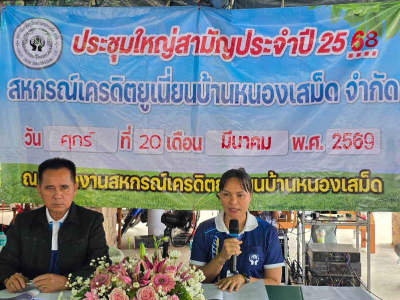 สำหรับปีบัญชีสิ้นสุด 31 ธันวาคม 2568 สหกรณ์เครดิตยูเนี่ยนบ้านหนองเสม็ด จำกัด มีผลการดำเนินงานกำไรสุทธิ 1,050,185.63 บาท ทั้งนี้ ได้กล่าวชื่นชมสมาชิกที่ให้ความร่วมมือ และมีความสามัคคีในการเข้าประชุมใหญ่ และกล่าวแสดงความยินดีกับสหกรณ์ที่มีผลกำไรจากการดำเนินงาน รวมทั้งได้ให้คำแนะนำเกี่ยวกับการบริหารจัดการเงินที่ได้รับจากสมาชิกสหกรณ์ฯ อย่างมีประสิทธิภาพ เพื่อให้เกิดผลประโยชน์สูงสุดกับสมาชิกและสหกรณ์ ต่อไป