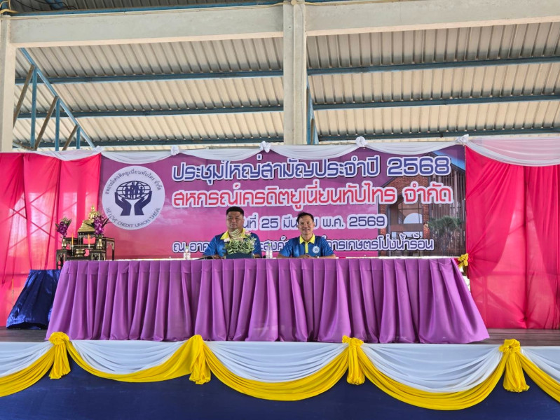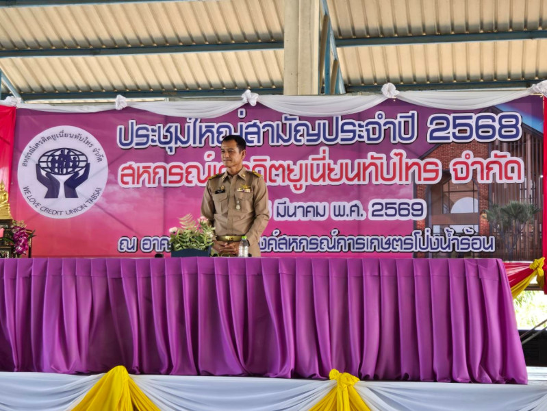 สำหรับปีบัญชีสิ้นสุด 31 ธันวาคม 2568 สหกรณ์เครดิตยูเนี่ยนทับไทร จำกัด ทุนดำเนินงานทั้งสิ้น 57,182,865.74 บาท มีผลการดำเนินงานกำไรสุทธิ 2,848,085.28 บาท ทั้งนี้ ได้กล่าวชื่นชมสมาชิกมีส่วนร่วมในบทบาทหน้าที่ได้เป็นอย่างดี การนี้ได้ให้คำแนะนำแก่สมาชิกเกี่ยวกับการบริหารจัดการเงินที่ได้รับจากสมาชิกสหกรณ์ฯ รวมถึงการชำระหนี้ให้ตรงต่อเวลาอย่างมีประสิทธิภาพ เพื่อให้เกิดผลประโยชน์สูงสุดกับสมาชิกและสหกรณ์ ต่อไป